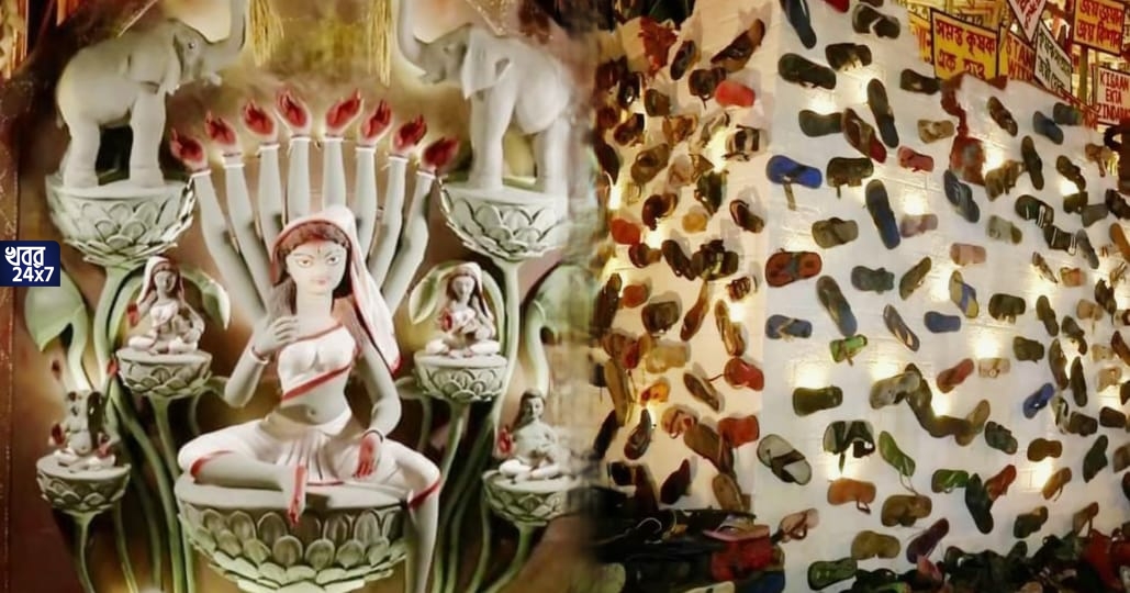 পূজা মন্ডপে ব্যবহার করা হয়েছে জুতো-চটি! ধর্মীয় ভাবাবেগে আঘাত করার অভিযোগে কলকাতার এই পুজো কমিটিকে আইনি নোটিস