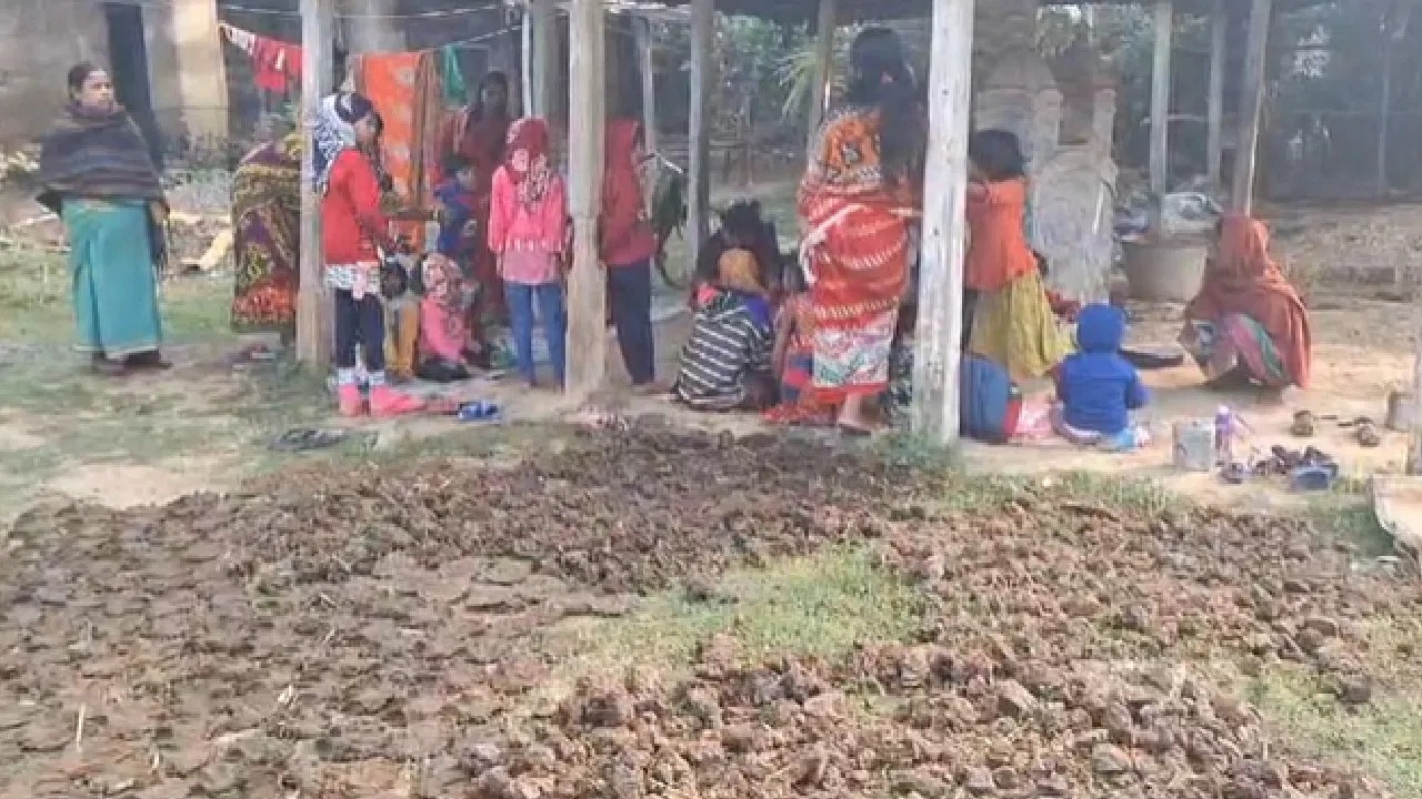 ছাদ ভেঙে গিয়েছে, শুকোচ্ছে ঘুঁটে, তার পাশে বেই মিড ডে মিলের খাবার খাচ্ছে বাচ্চারা, বেহাল দশা অঙ্গনওয়াড়ি কেন্দ্রের