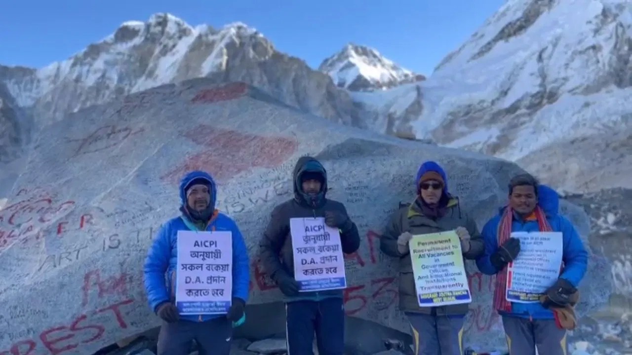 ঠাণ্ডার মধ্যে কাঁপতে কাঁপতেই মমতাকে আন্দোলনের বার্তা, এভারেস্ট বেস ক্যাম্প থেকে এবার ডিএ-র দাবী